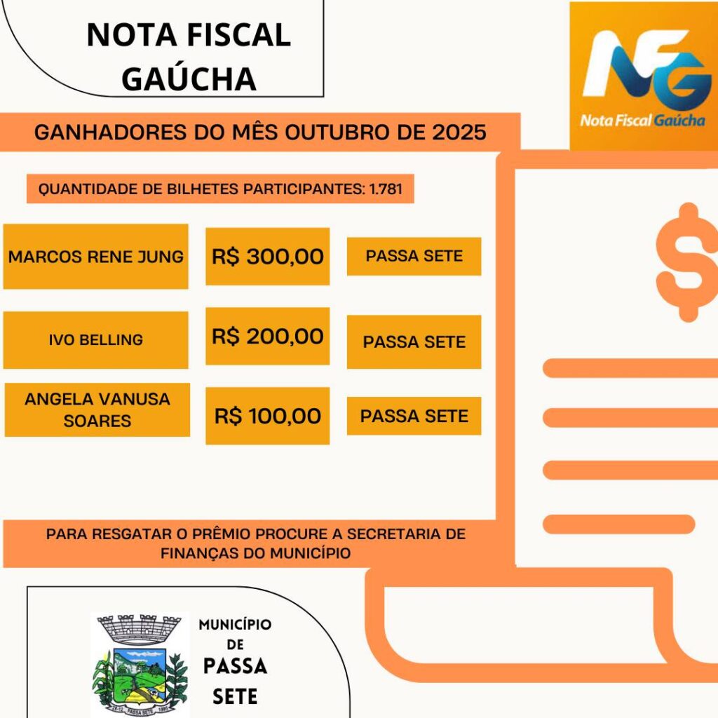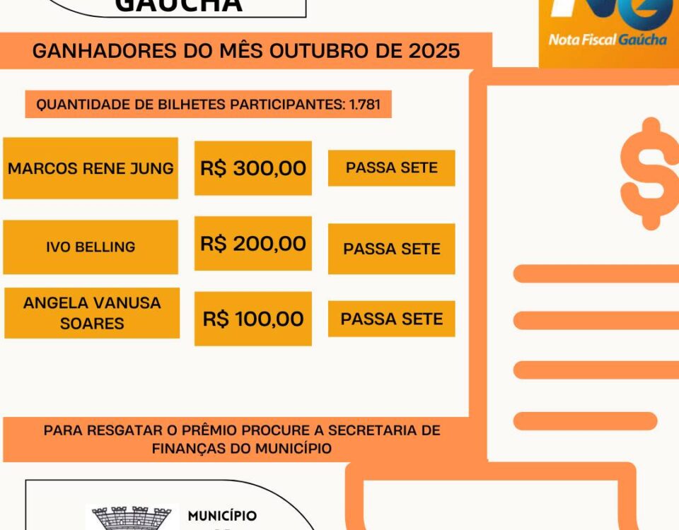 NFG – EXTRAÇÃO MUNICIPAL Vencedores do Sorteio NFG n°157– Outubro de 2025